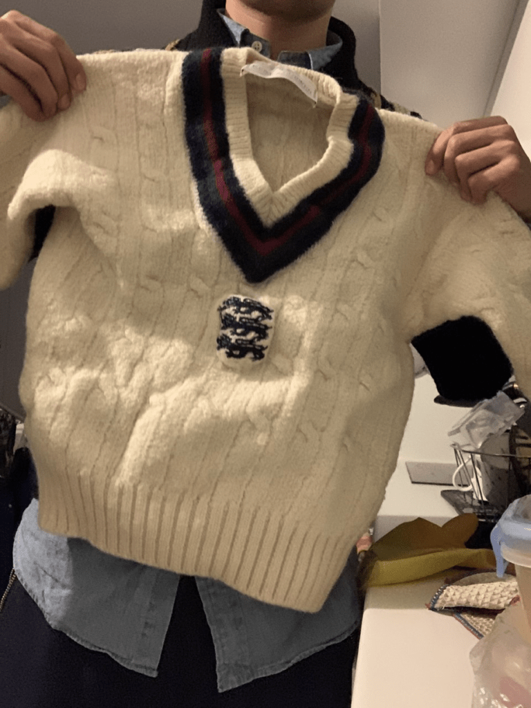 A finales del año pasado en una de mis acostumbradas caminatas en busca de tesoros atávicos encontré una pop-up store. Era una tienda nómada que cada mes viaja a una ciudad diferente en el Reino Unido. A veces están en York, luego en Mánchester y otras veces en Leeds. Platiqué un rato con la dueña, una norteamericana cuyo nuero presumió ser modelo de Ralph Lauren. Aunque nunca pudimos encontrar fotos que lo comprobara. Entre la plática, la búsqueda en los racks, la pajita (término usado en el coleccionismo para referirse a los artículos de poco valor), encontré un suéter que me llamó mucho la atención, aunque me quedaba muy grande, ya que era talla XXL.