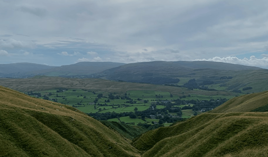 Foto que tomé de un paisaje norteño del RU. Los grandes pastizales son hogar de miles de ovejas lanudas, las bolitas blancas a la izquierda.