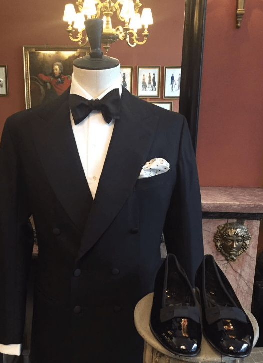 En el caso de llevar smoking, para el pecho lo que se espera es el uso de studs, siempre elaborados en oro o plata y con piedra de color negro, que por lo regular será de ónix. Aprovechamos este punto para mencionar que, para el smoking, en la cintura siempre se debe llevar fajilla, en color negro y de seda, cualquier otra solución demeritará la perfección que deseamos crear.